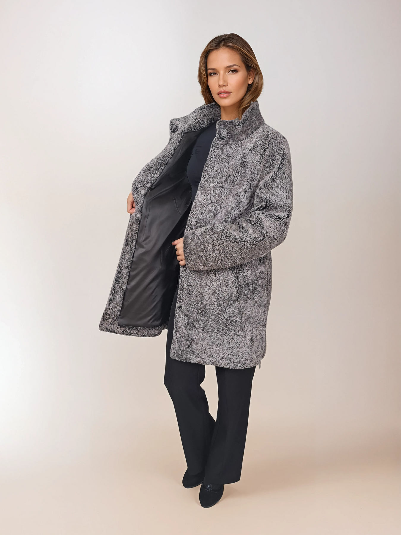 Innocente is the ultimate wardrobe essential for the modern woman. This 83 cm coat in dark brown nappa lamb brisa delivers exceptional warmth without sacrificing style. Equally at home during daily errands or evening occasions, its refined silhouette and luxurious material transition seamlessly between contexts. The sophisticated dark brown hue complements any palette, while the generous length provides elegant coverage. An investment piece that effortlessly bridges casual comfort and polished glamour.