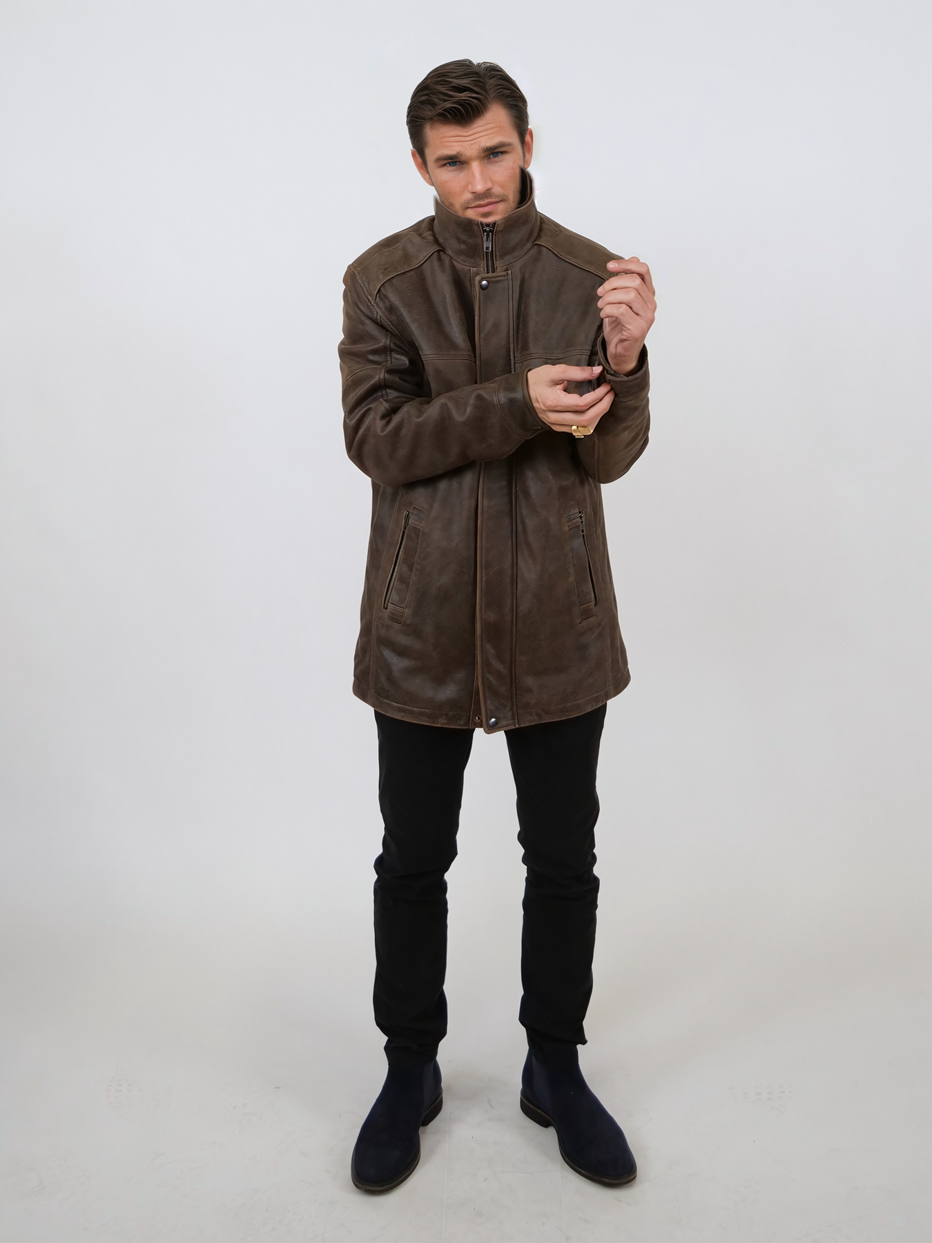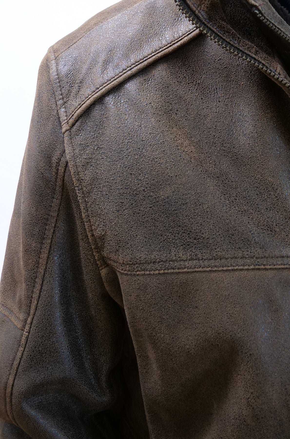 Stay warm and stylish this winter with our Winter Gomez goat rubbed off leather jacket. Featuring a convenient inside zip off collar and pocket, this jacket is both functional and fashionable. Handcrafted with 100% lamb leather, it's the perfect addition to any man's wardrobe.