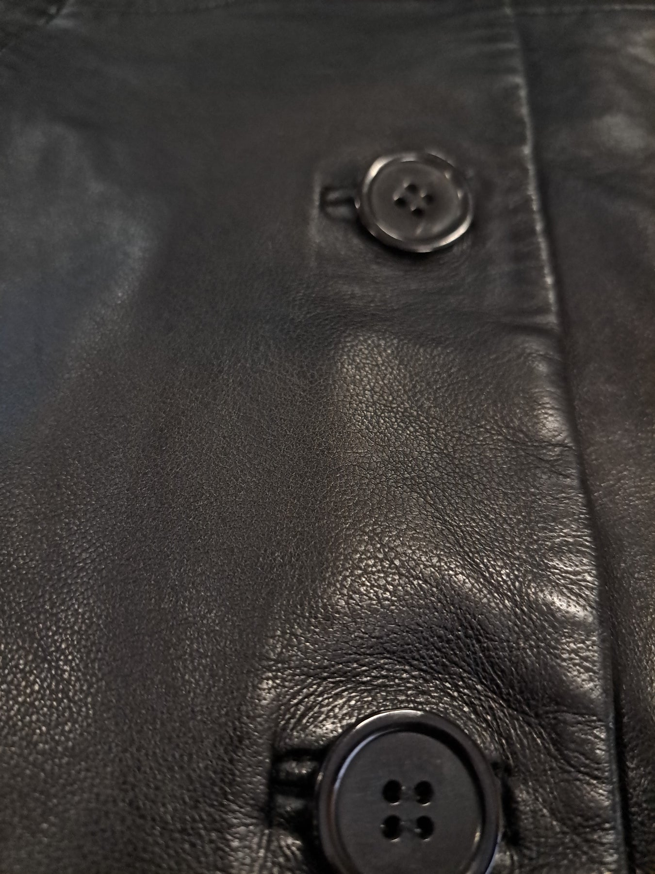 Erika is a refined lamb leather jacket crafted by Levinsky, designed for effortless elegance. The luxurious shiny finish catches light beautifully, while the supple lamb leather feels impossibly soft against the skin. At 95 cm in length, it hits at the hip for a flattering silhouette. The structured collar adds polish and presence. Lined with smooth polyester for comfort and ease of movement, this black jacket transitions seamlessly from day to evening. A timeless investment piece that embodies understated luxury.