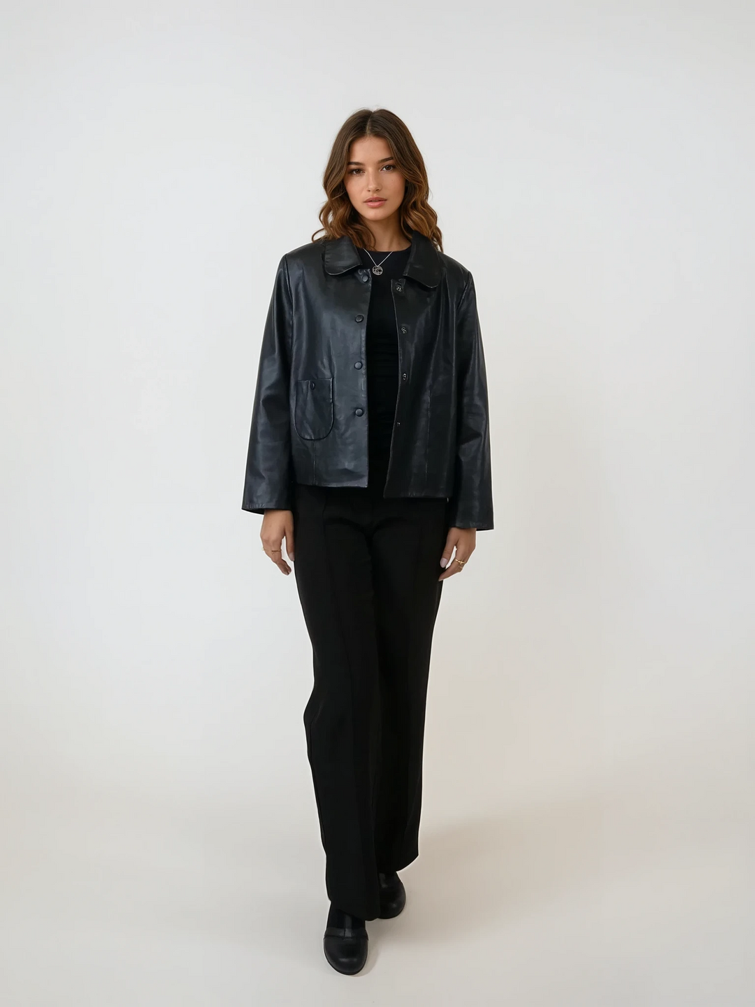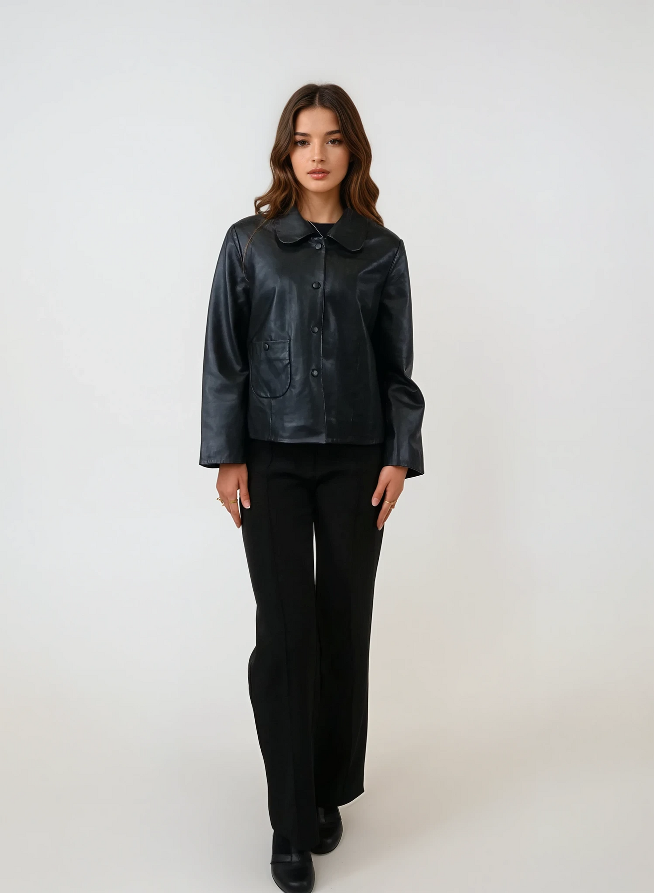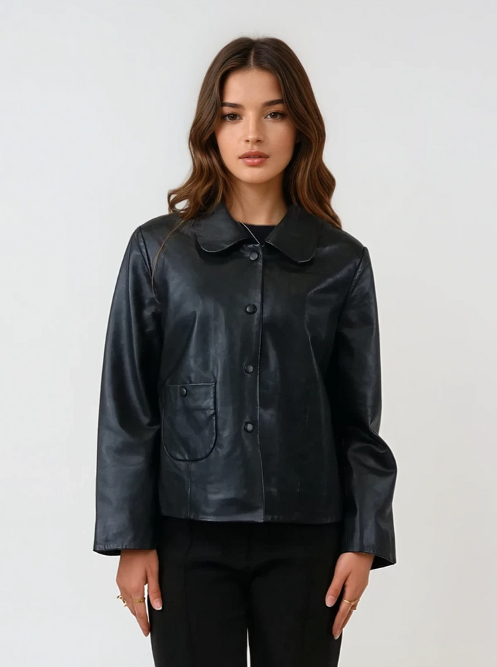 Introducing the Marley leather jacket - crafted from premium lamb leather and designed specifically for the modern woman. Stay warm and stylish with its cozy polyester lining and convenient inside pockets. Elevate any outfit with this must-have piece from Levinsky.