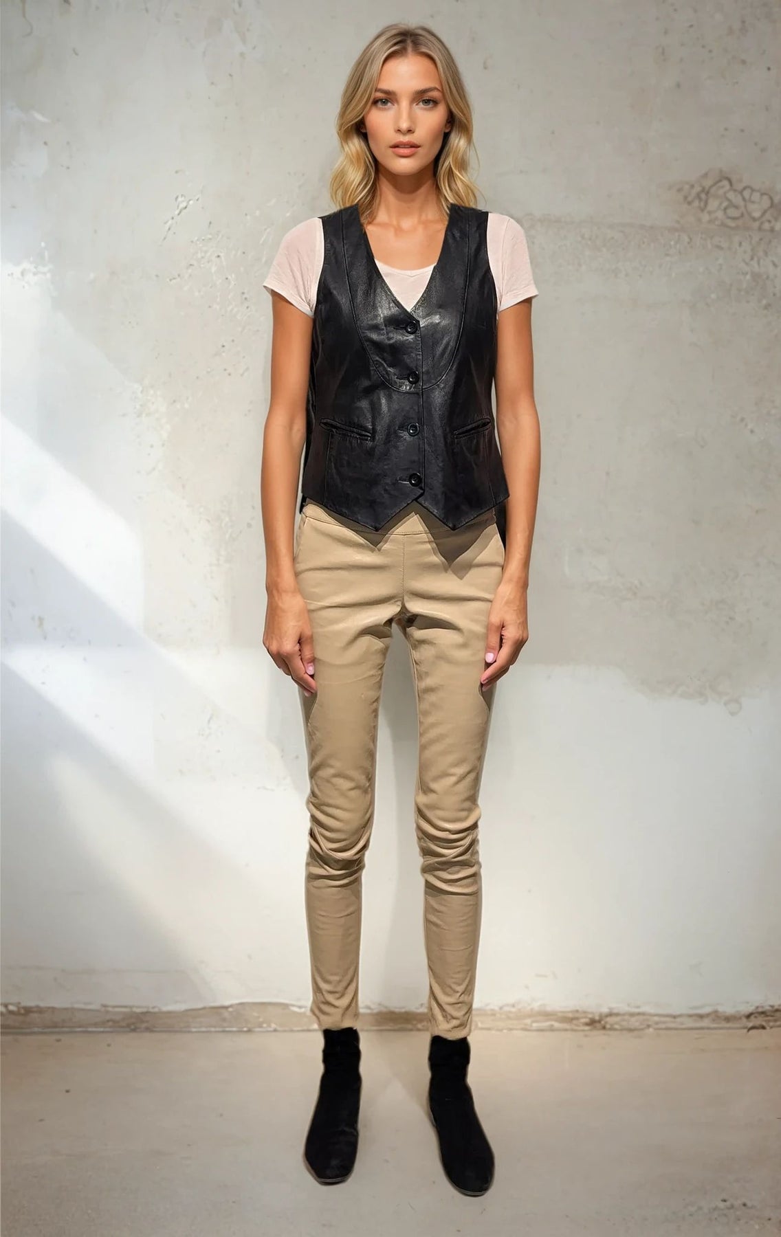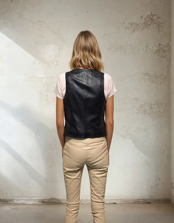 Tessa West Black Leather Vest: Timeless Elegance by Levinsky Since 1869