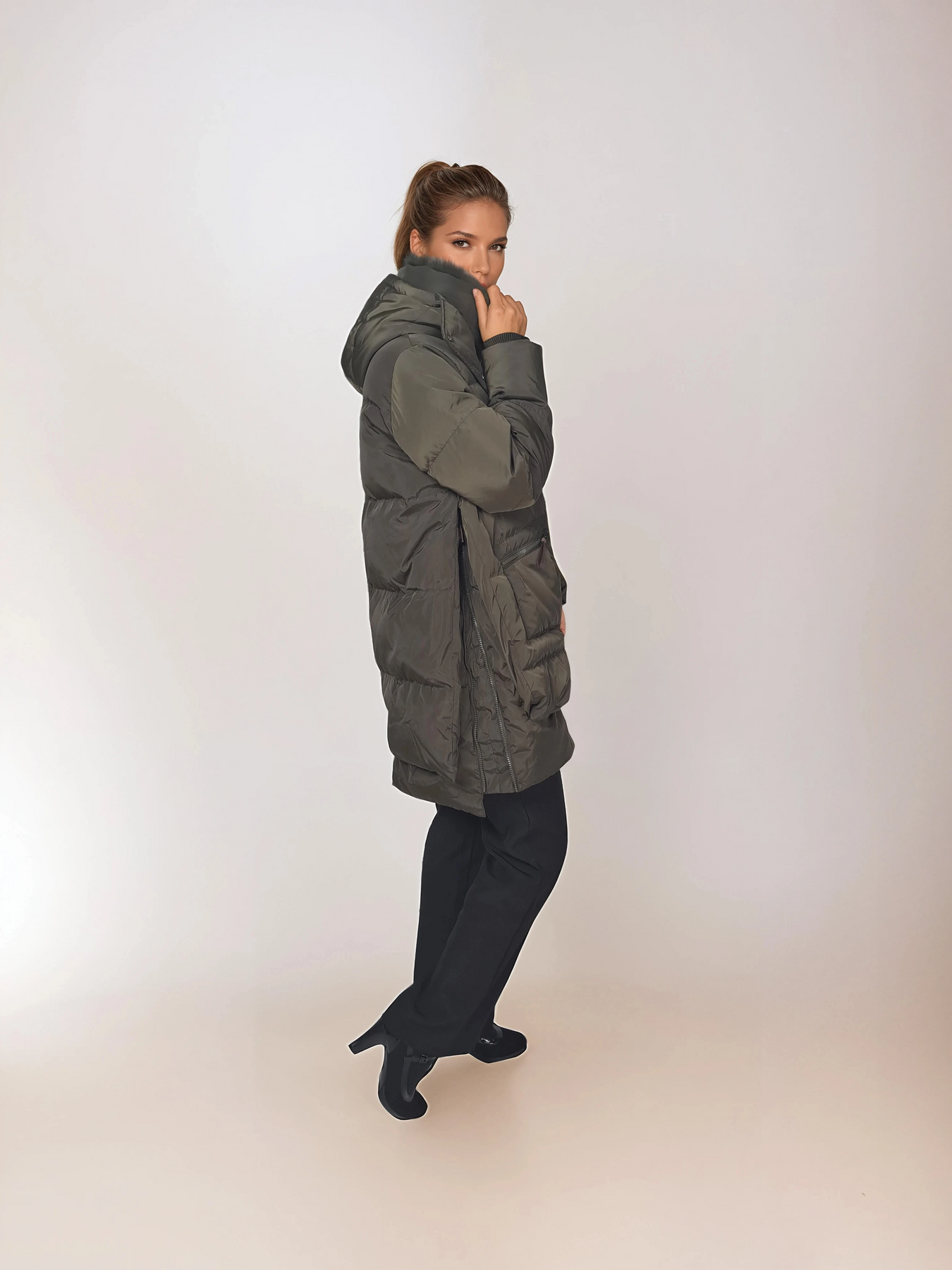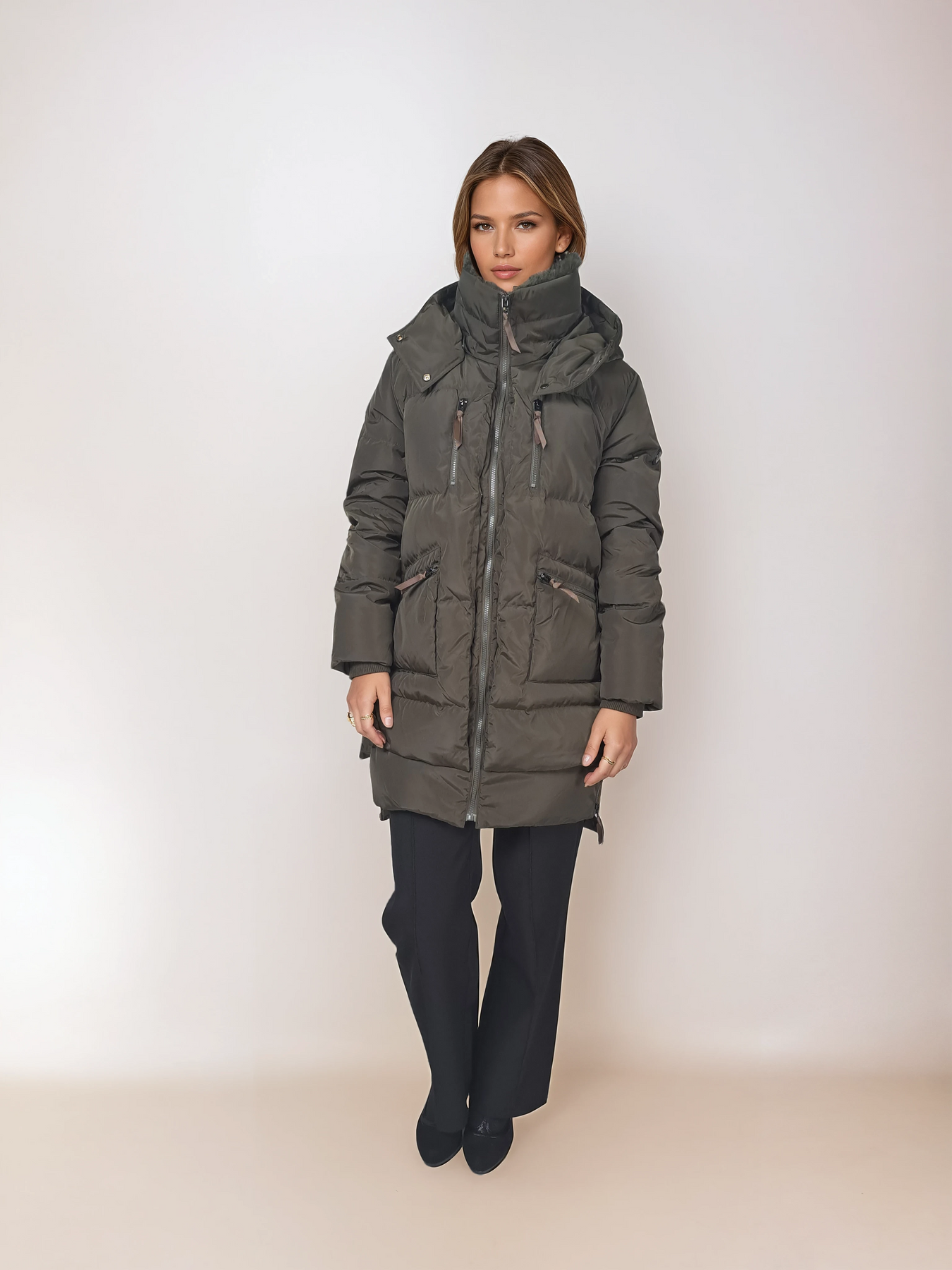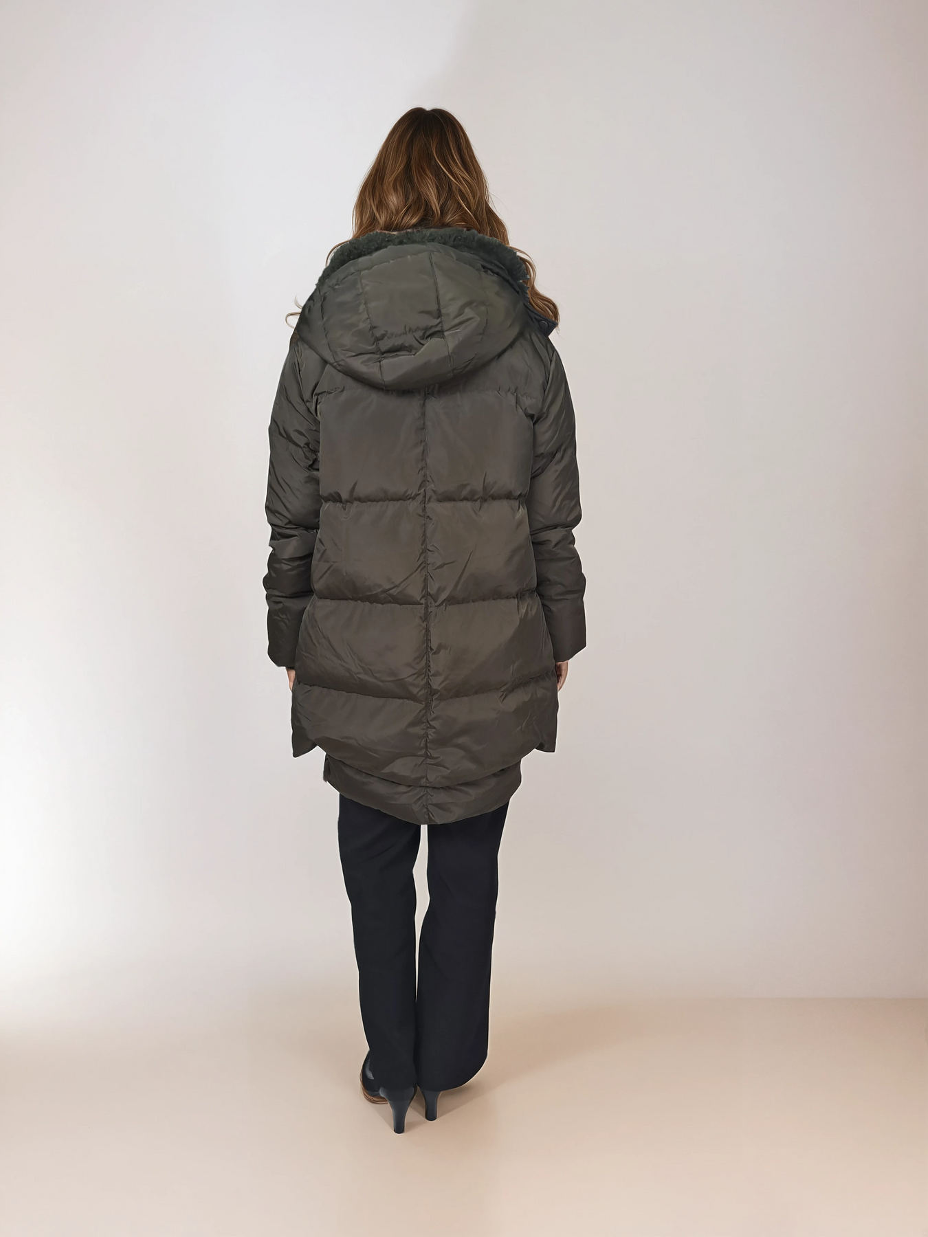 Denne 90 cm army dunjakke fra Levinsky er designet til kvinder og har en lammeuldskrave. Hold dig varm og stilfuld med dets højkvalitetsmaterialer og gennemtænkte design. Perfekt til koldt vejr, denne jakke er et must-have til enhver vintergarderobe.
