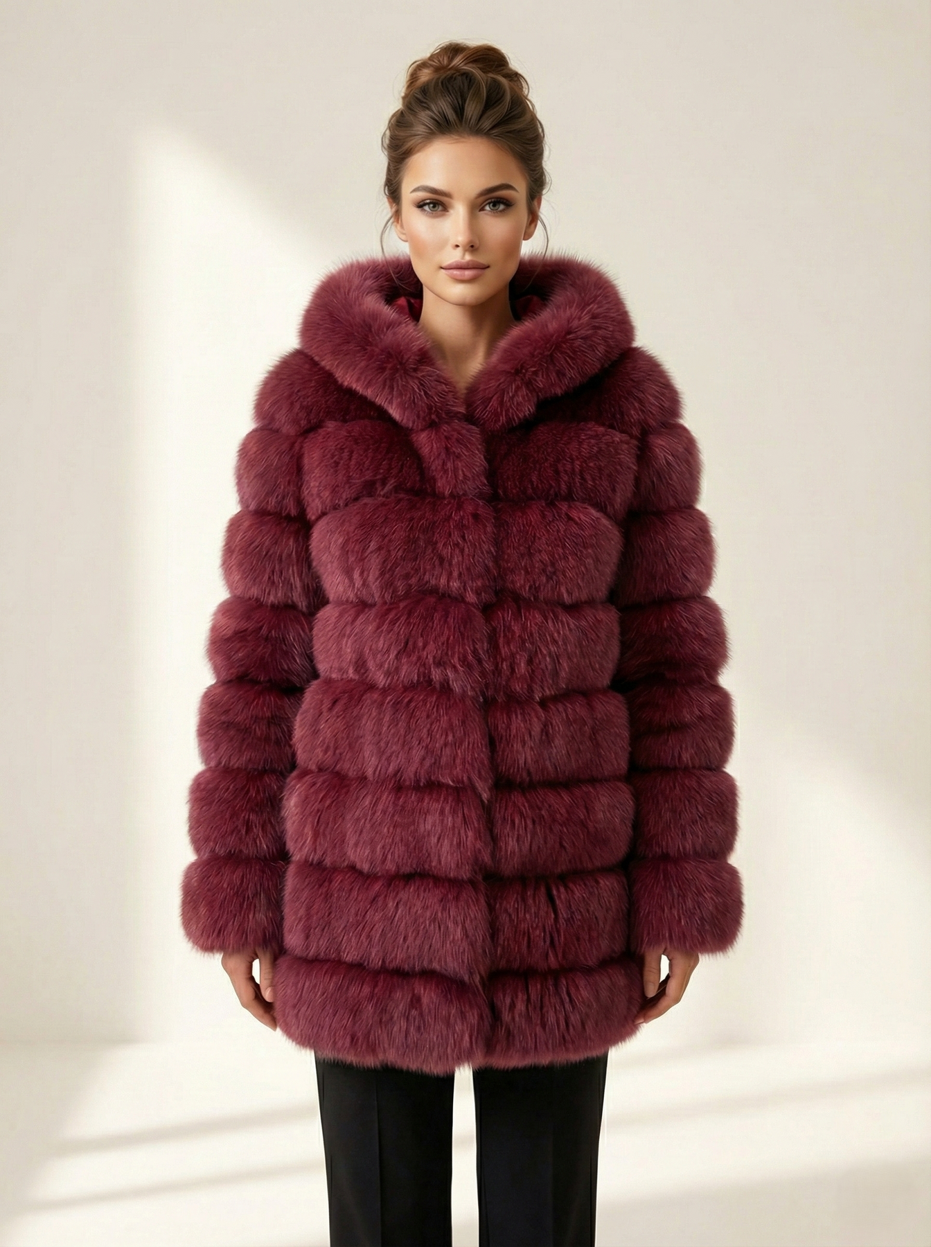 | Lýsing | Litað blár refur skinnkápu úr láréttu leðurmynstri. | ||||||||