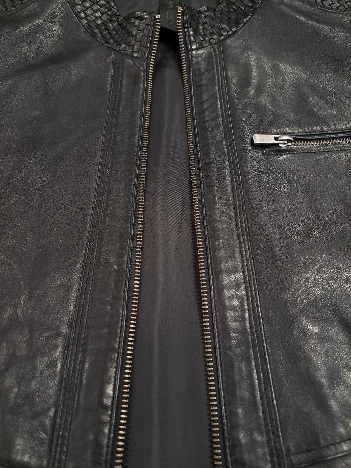 | Description | **Black Men's Lamb Leather Jacket with Woven Accents** Introducing the ultimate statement piece: a black men's jacket crafted from exceptionally soft lamb leather. This jacket is elevated by intricate woven leather stripes, stylishly detailed across the sleeves and collar, providing a subtle yet striking texture. Designed for comfort and utility, it features a smooth polyester lining and includes convenient inside pockets for your essentials. A sophisticated piece that merges timeless design with modern details. |