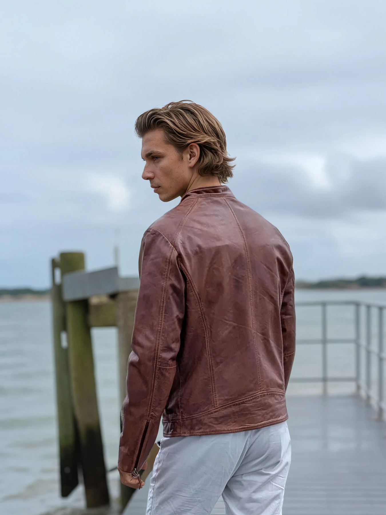 Bravo lamme Malli læderjakken i kobberbrun kombinerer tidløs stil med praktisk design til mænd. Den er lavet af Levinsky og har blødt lammelæder og et behageligt polyesterfor. Flere indvendige lommer giver praktisk opbevaring, hvilket gør denne jakke til et ideelt valg for dem, der værdsætter både sofistikering og funktionalitet.