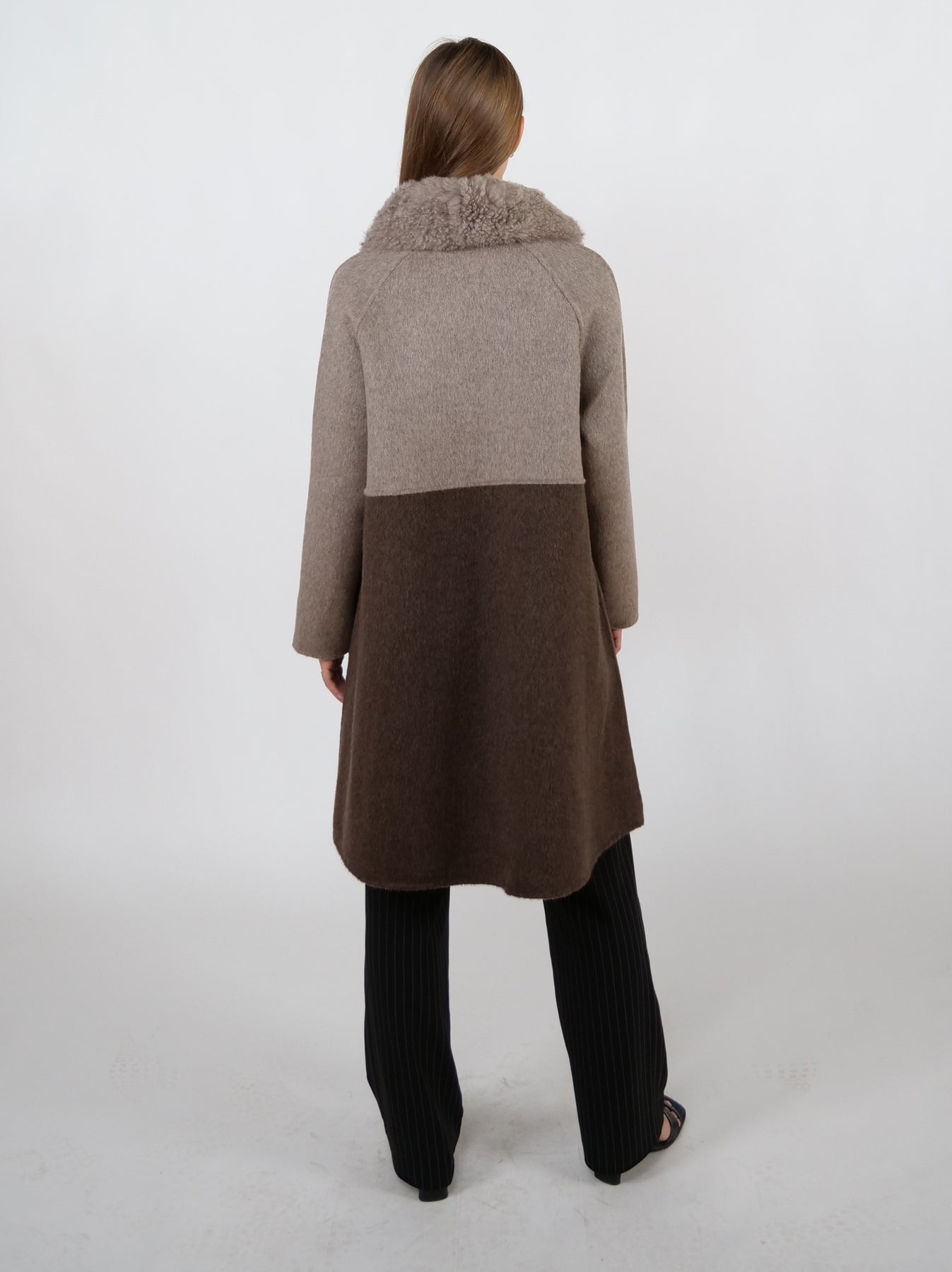 Scopri il lusso e il calore con la giacca di lana Italia. Realizzata con lana di alta qualità al 100%, questa giacca vanta un colletto di pelle di agnello staccabile per uno stile e versatilità aggiunti. Resta accogliente e chic nelle tonalità taupe e marrone scuro.