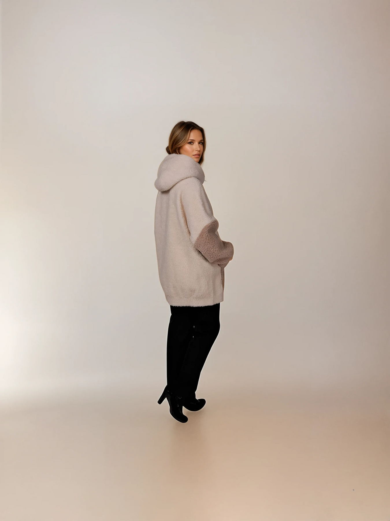 Introducing Ilyana, our 75 cm. masterpiece offering a relaxed fit and crafted with soft and warm air wool raffle in an elegant off-white tone. Perfect for any fashion-forward woman looking for luxury and comfort. Experience the ultimate sophistication with Ilyana.