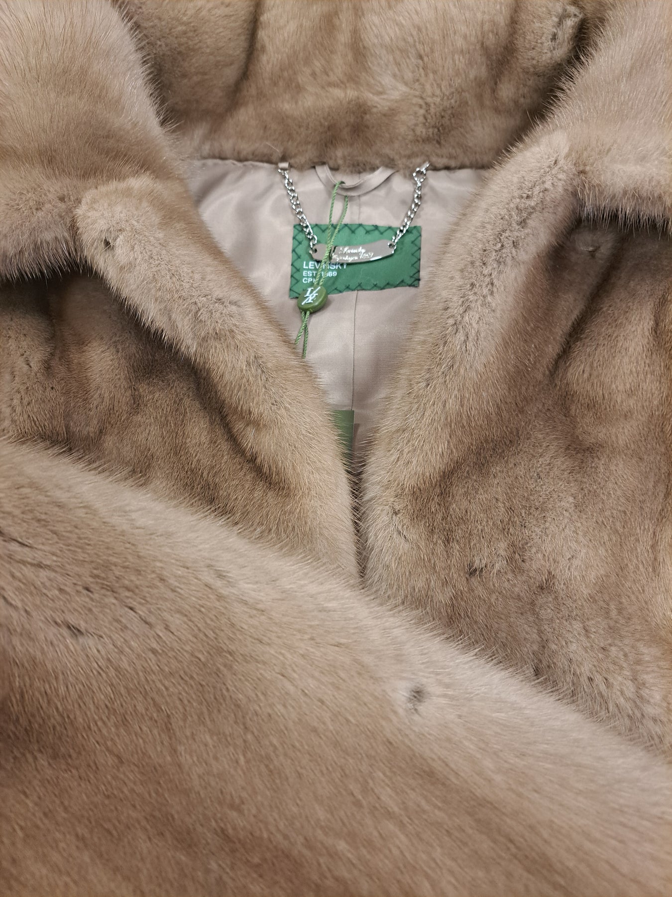 Irene er en klassisk minkfrakke, der kombinerer tidløs elegance med moderne minimalism. Denne 65 cm lange frakke fra Levinsky præsenteres i en delikat pastelfarve og er designet til kvinder, der værdsætter kvalitet og raffinement. Det karakteristiske krave tilføjer et sofistikeret detalje, mens det bløde minkpels sikrer både varme og luksus. Perfekt til både formelle og hverdagslige anledninger, hvor du ønsker at udstråle diskret elegance.