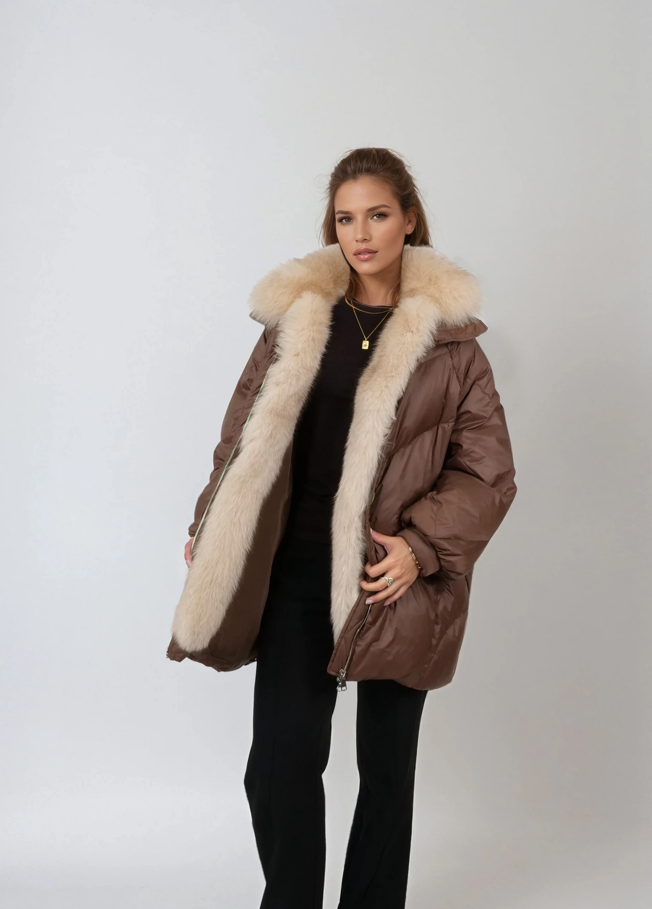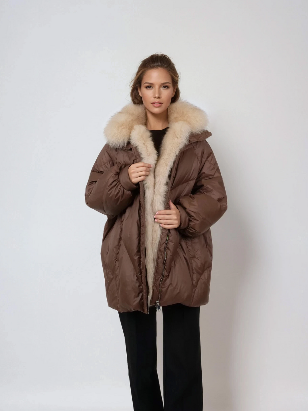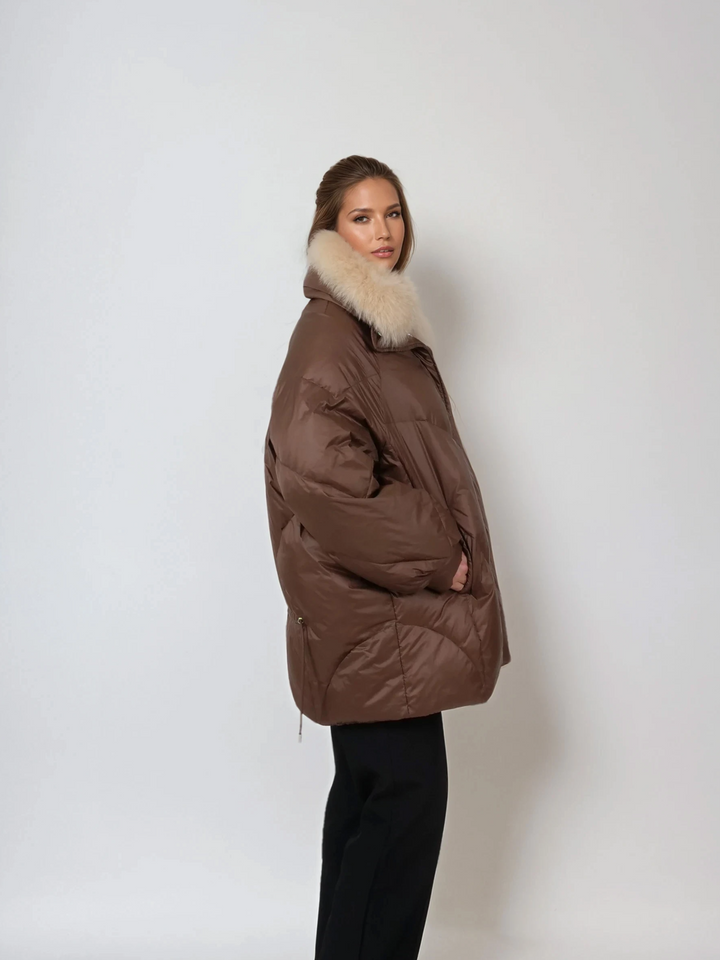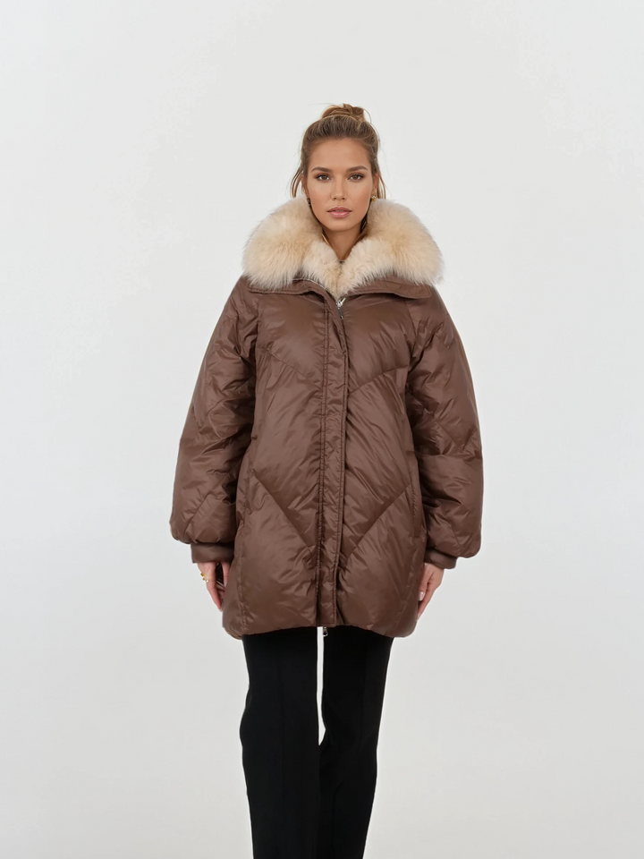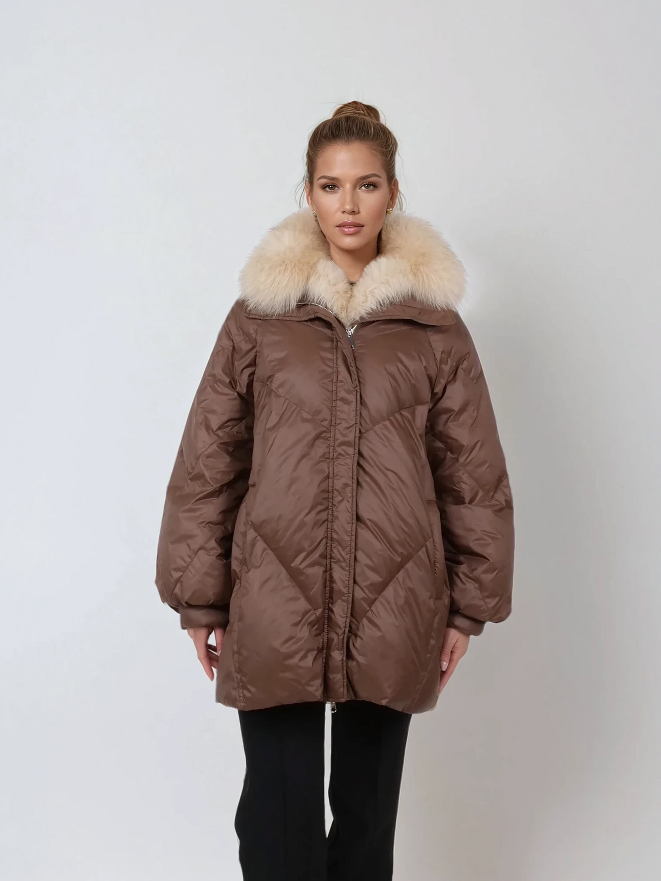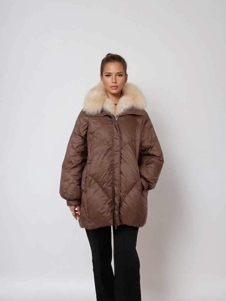Denne elegante dunjakke til kvinder i en blød elfenbensfarve giver varme og stil med sin længde på 80 cm. Med en aftagelig ægte rævepelskrave og forkant, giver den dig mulighed for at tilpasse dit look ubesværet. Det slidstærke 100% polyesterfor sikrer langvarig styrke, mens den sikre lynlås giver bekvemmelighed og beskyttelse mod kulde. Denne jakke er lavet af Levinsky og kombinerer kvalitetsmaterialer og gennemtænkt design for at holde dig komfortabel og chik hele sæsonen.