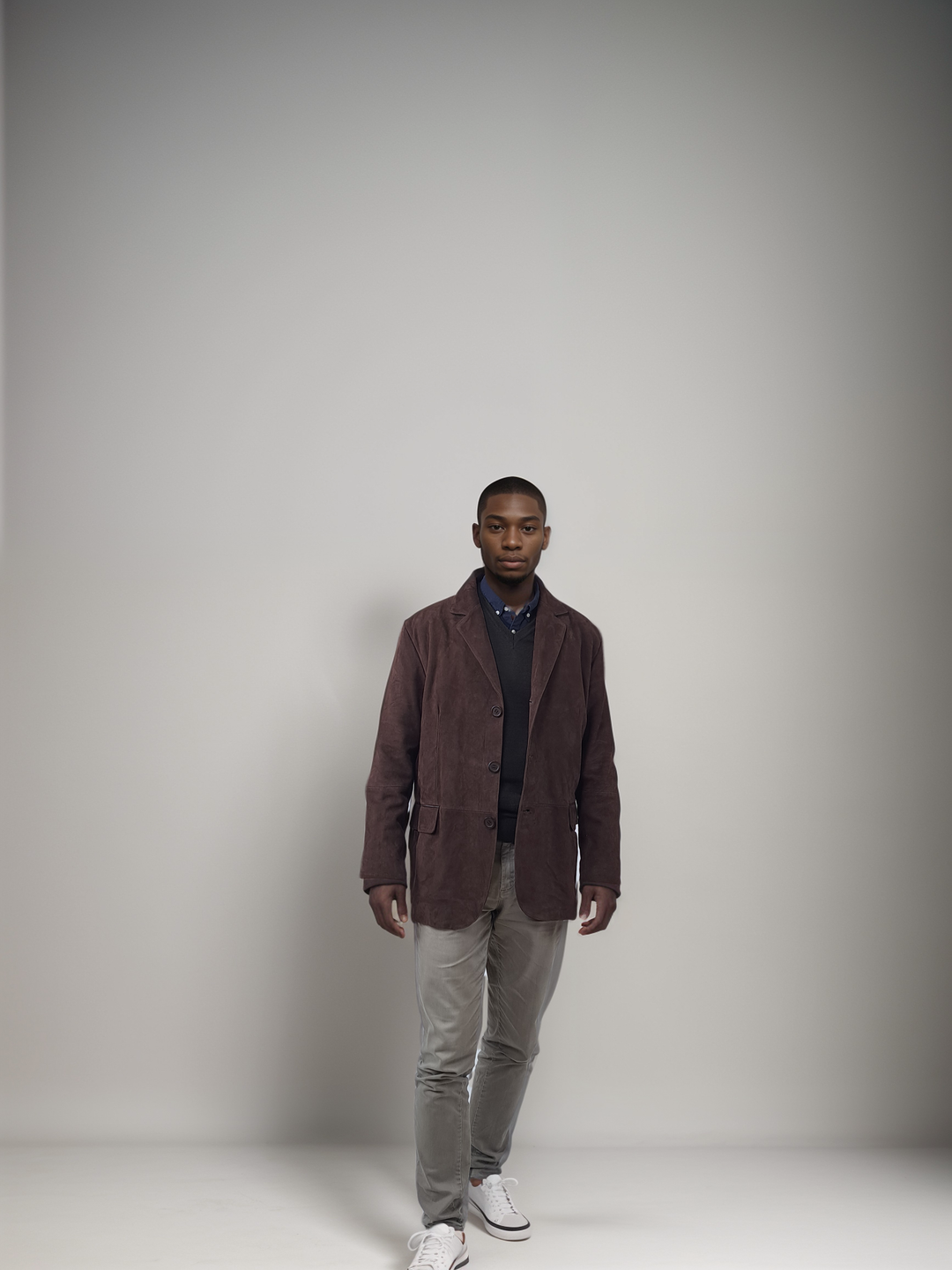 Løft din stil med Rafel gedelæderblazer til mænd i brun. Denne klassiske blazer er lavet af blødt gede-ruskind, der tilbyder et luksuriøst og sofistikeret look. Den smukke brune nuance tilføjer et strejf af varme og alsidighed til jakken, hvilket gør den velegnet til forskellige lejligheder, både indendørs og udendørs.